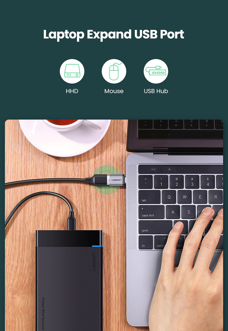UGREEN – Adaptador USB C a USB tipo C OTG Cable USB C macho a USB 3.0 A hembra Conector de cable compatible para MacBook Pro 2019 2018 Samsung Galaxy S10 S9 S8 Note 9 8 LG V40 V30 G6 Google Pixel 2 XL…y mas…(COD. 50283)
