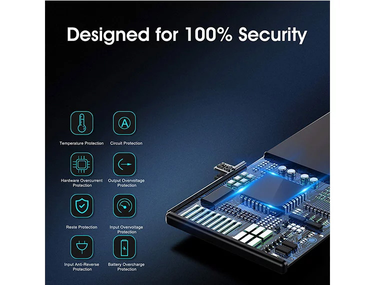 Esta batería de reemplazo de alta capacidad de marca DEJI cuenta con certificados de calidad CE, FCC y ROHS. El chip inteligente de nivel superior incorporado brinda múltiples protecciones de seguridad contra sobrecarga, sobrecarga, sobrecorriente y cortocircuito y otros problemas para una operación más segura tanto para el usuario como para el dispositivo.