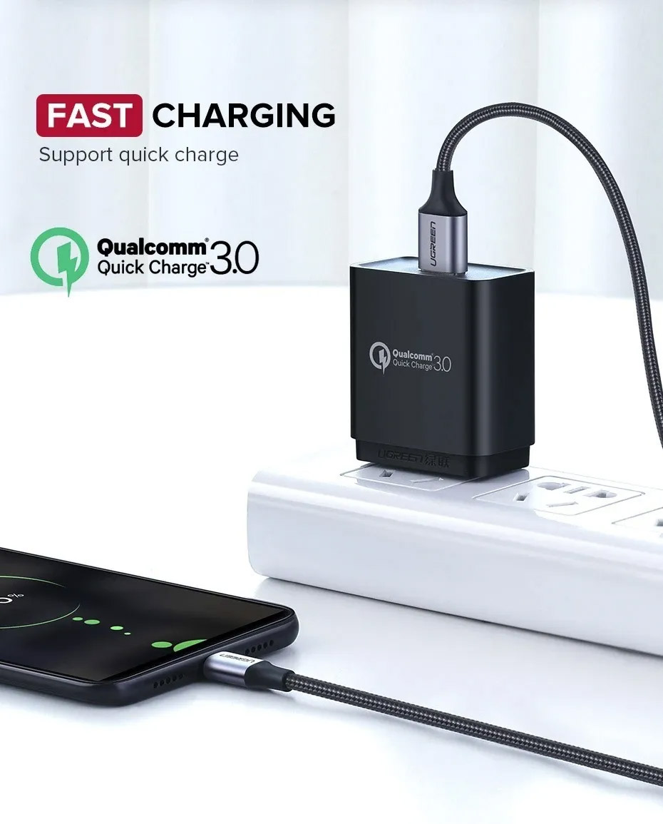 Ugreen admite la tecnología de carga rápida. Para dispositivos habilitados para QC 2.0 / 3.0, salida hasta un máximo de 18W (12V / 1.5A 9V / 2A 5V / 2A); para dispositivos estándar que no son QC 2.0 / 3.0, salida hasta máx. 5V / 2A. Compatibilidad universal: este cable cargador micro USB es compatible con la mayoría de los teléfonos móviles, tabletas y teléfonos con Windows Android.