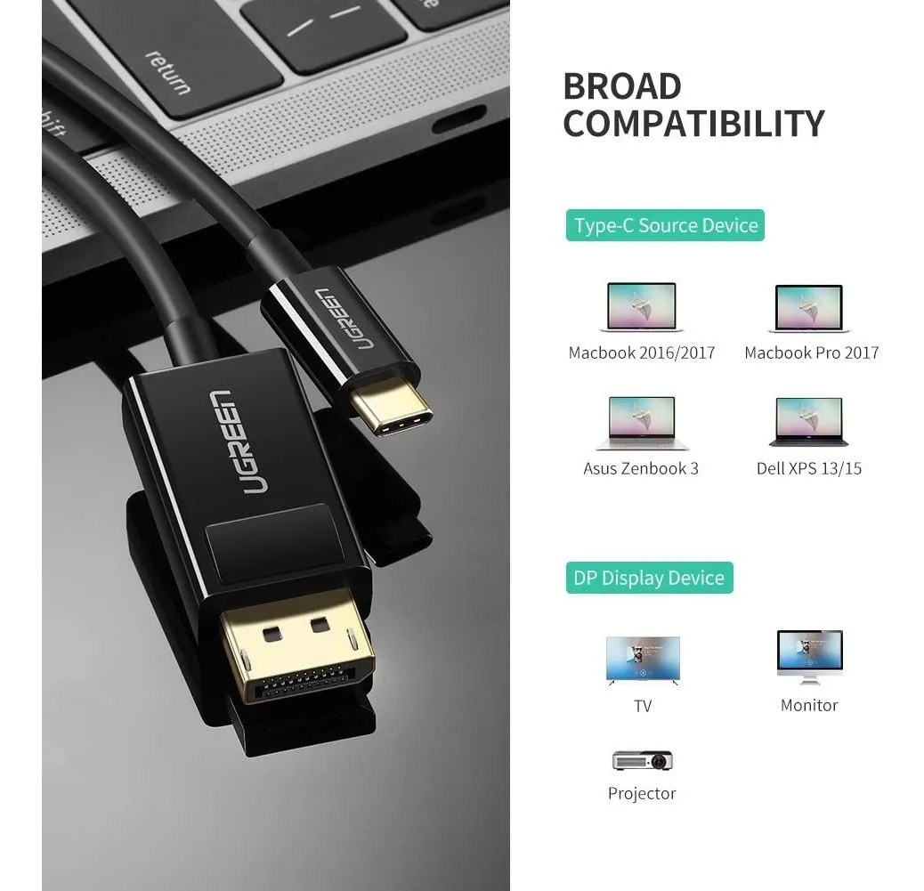 – Este cable adaptador Ugreen USB Tipo C a Displayport le permite cambiar de una computadora Macbook u otros dispositivos con puerto USB-C a una pantalla de TV, proyector … con puerto Displayport.