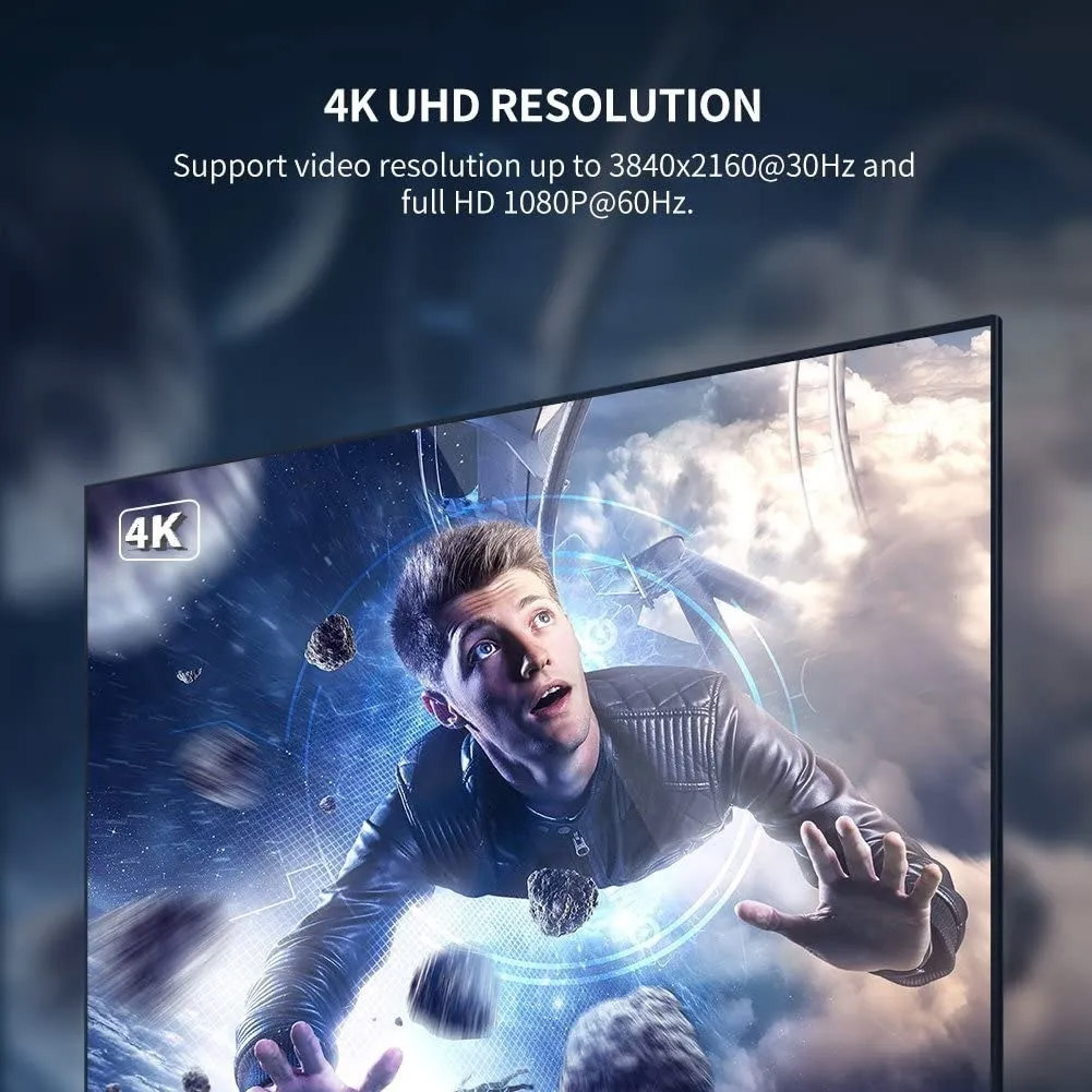 – Admite resolución máxima: 4K * 2K @ 30Hz, 1080 @ 60hz.