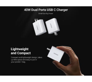 UGREEN – Cargador USB C con doble puerto de 40 W y enchufe plegable, Adaptador de corriente PD USB-C, compatible con iPhone 14/iPhone 14 Pro Max, iPhone 13/12/11, iPad Mini/Pro, Airpods, Apple Watch, S23/S22/S20…y mas…(COD. 90299)