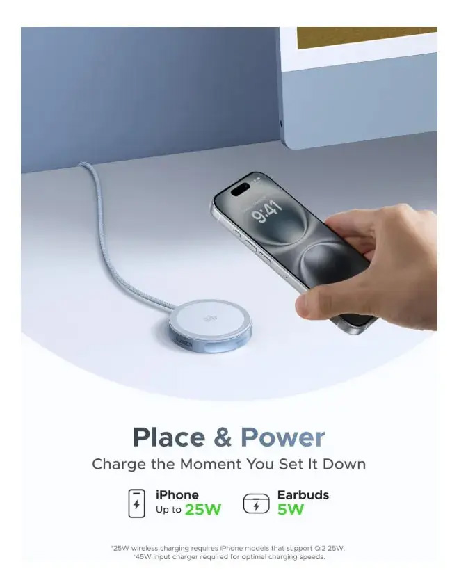 Funciona con las series iPhone 17/16/15/14/13/12, AirPods 4/3, AirPods Pro2/Pro y otros dispositivos compatibles con Qi2 para un uso diario versátil.