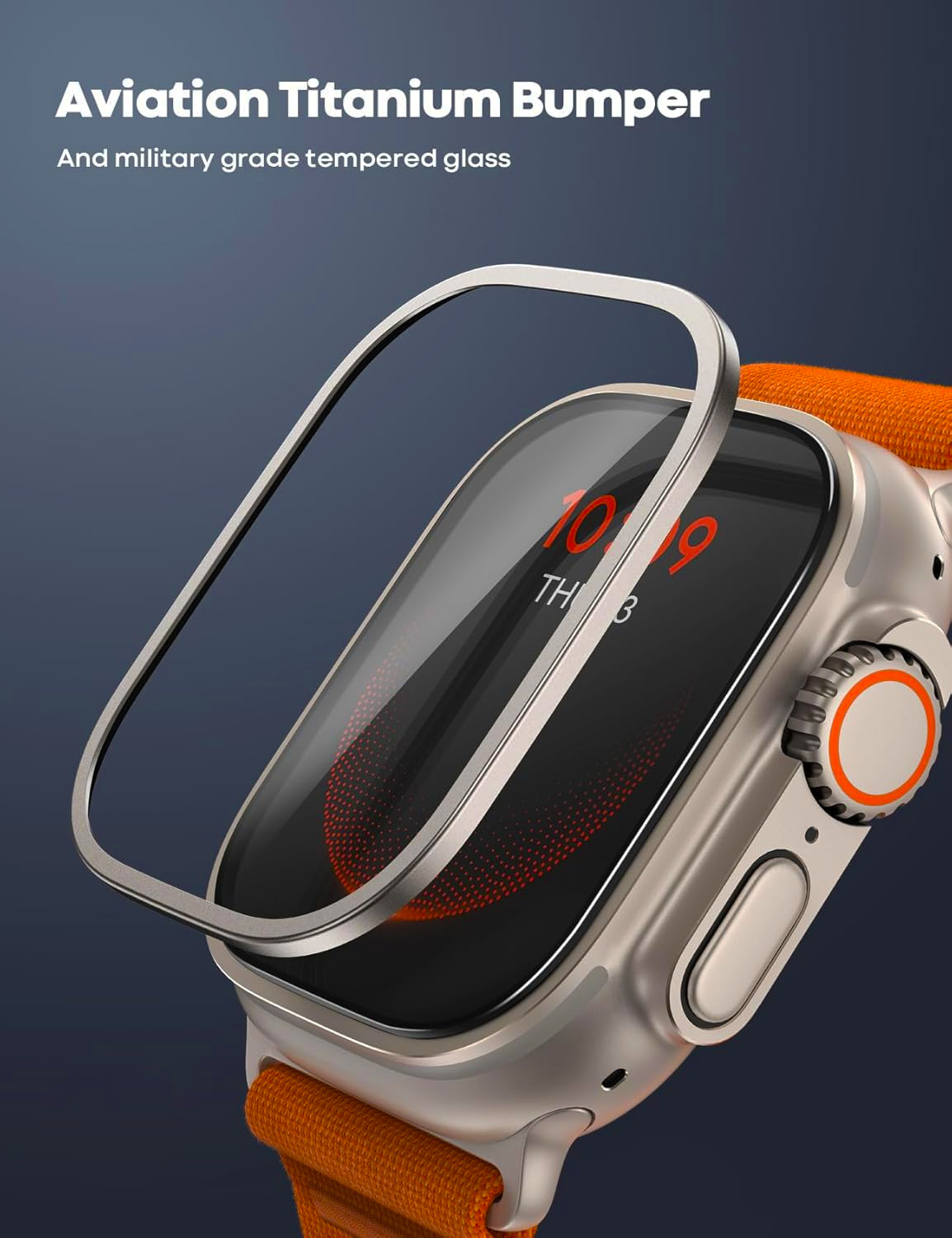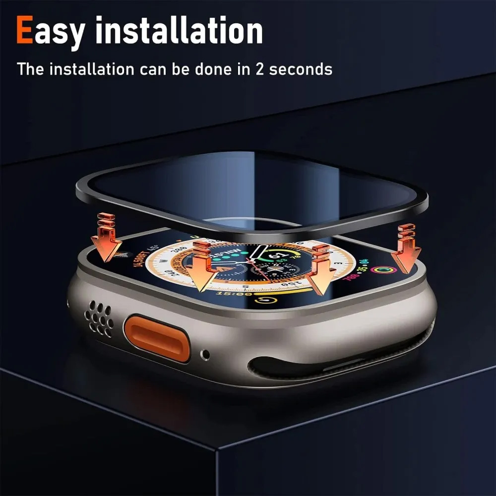 Este protector de pantalla de vidrio templado con marco de aleación de titanio cubre completamente toda la pantalla del reloj y mantiene tu Apple Watch Ultra de 49mm en su forma original y protege la pantalla alrededor de la pantalla y el parachoques de arañazos en la vida diaria.