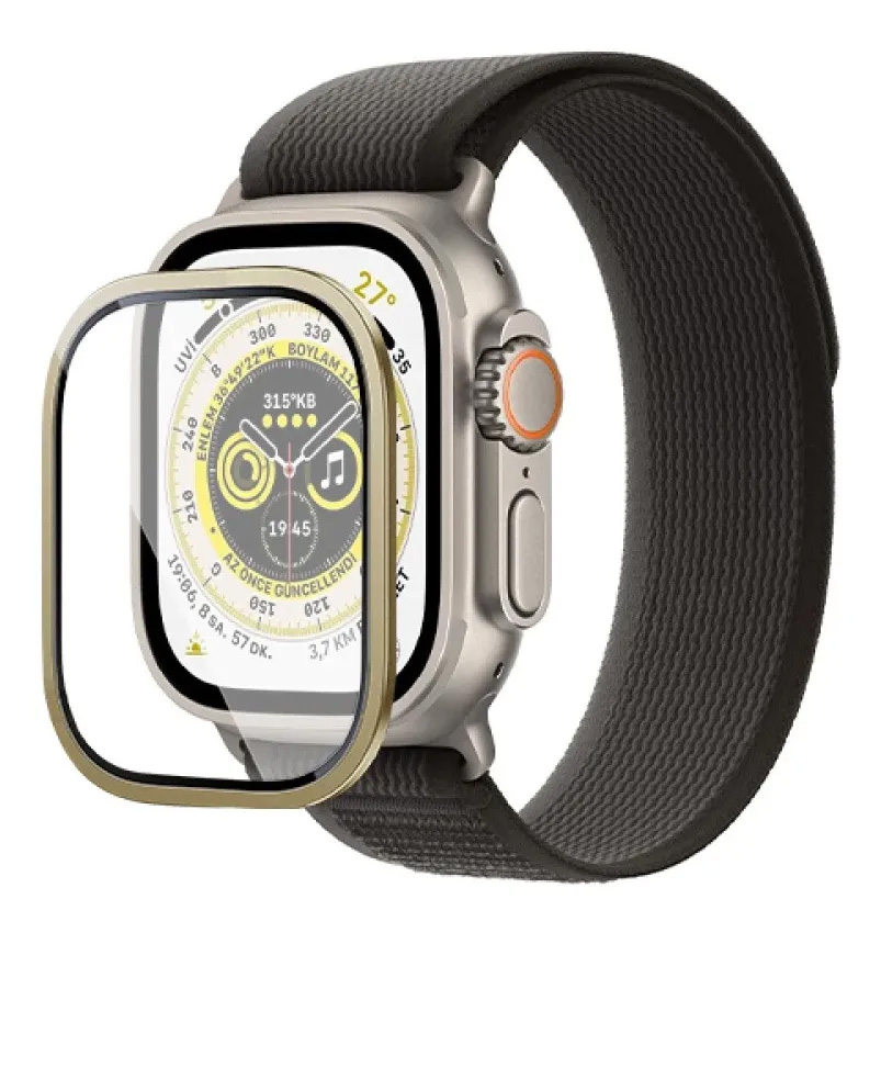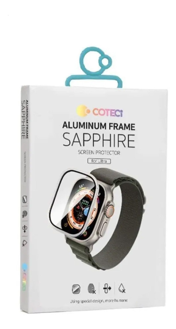 Marco Frame de Aluminio Con Protector de Pantalla de Vidrio Templado para Apple Watch Ultra / Ultra 2 / Ultra 3 (49 mm), Marca COTECI. Colores a elegir BLACK / GOLD / TITANIUM