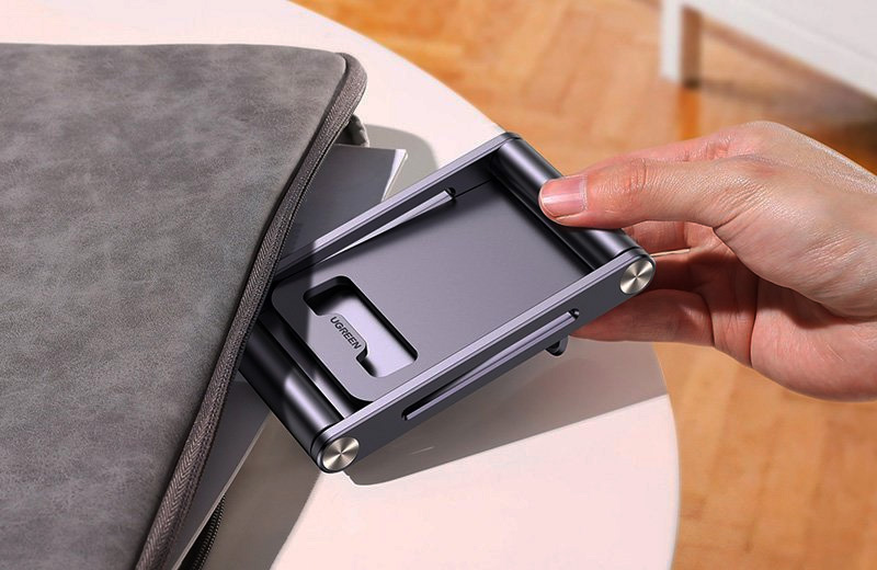 El soporte de teléfono para escritorio es pequeño y compacto cuando está plegado. Puedes llevar el mini soporte plegable para teléfono contigo en el camino a viajar.