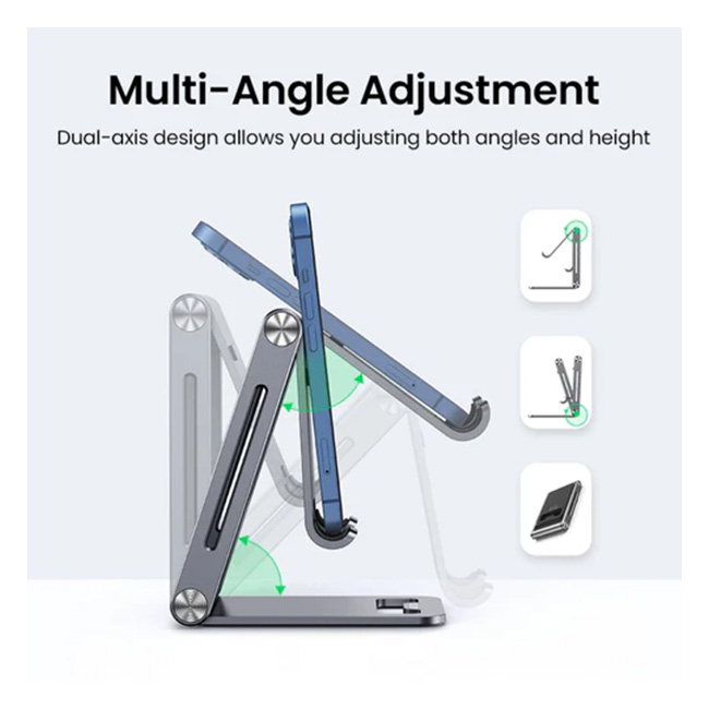 UGREEN – Soporte de escritorio ajustable de Aluminio para teléfono celular, compatible con iPhone 14 13 12 Pro Max, iPhone 11 X SE XS XR 8 Plus 6 7 6S Samsung Galaxy Note20 S22 S21 S21 FE Smartphone Gris – (COD. 80708)